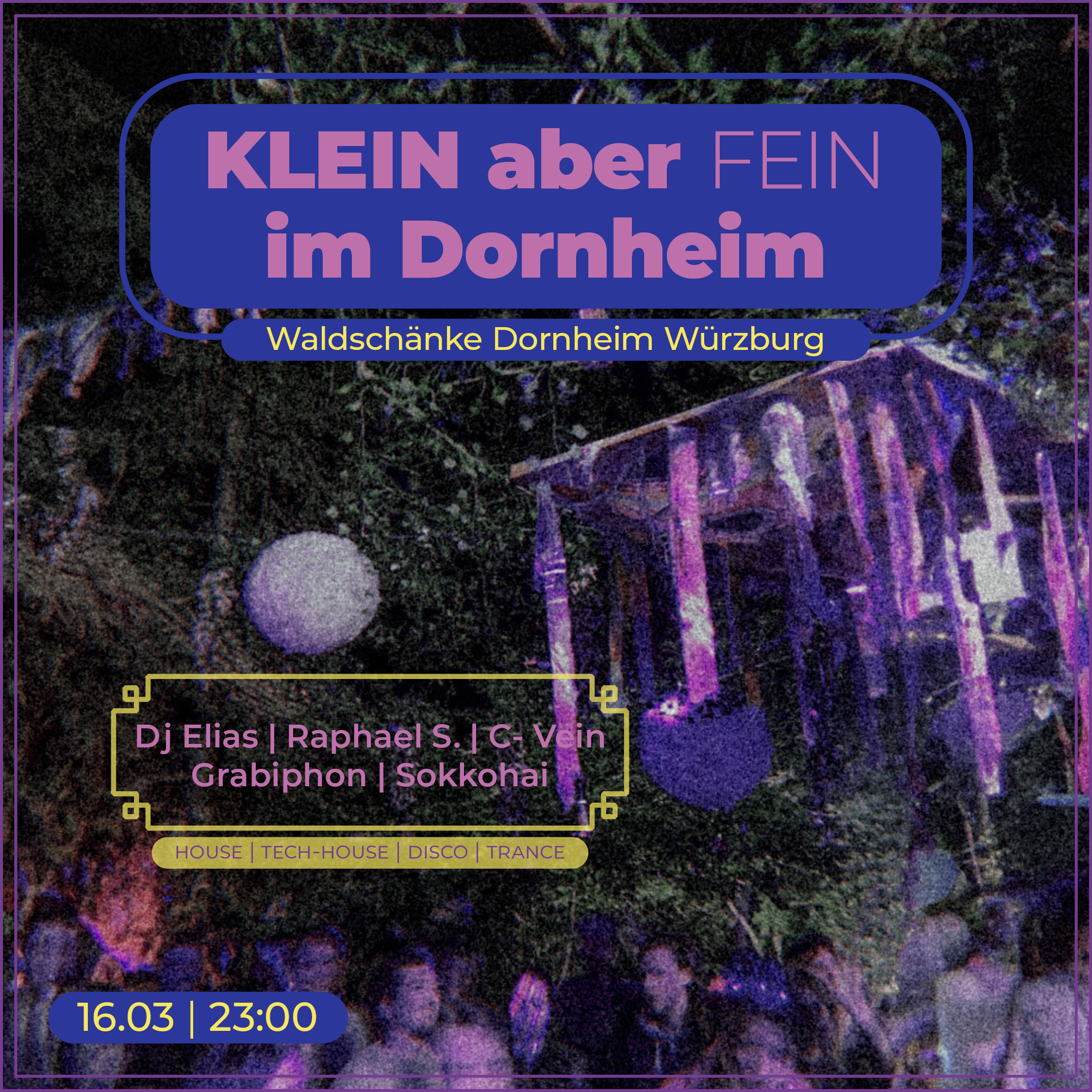 An diesem Abend wird das Klein aber Fein-Kollektiv die Gemäuer des Dornheims mit einem Mix aus Techhouse, House, Disco und Trance zum Wackeln bringen und euch mit auf eine musikalische Reise nehmen.